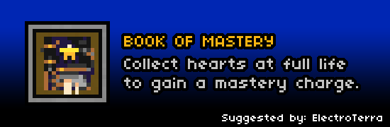 Book of Mastery - "Collect hearts at full life to gain a mastery charge." - (Suggested by community member ElectroTerra)